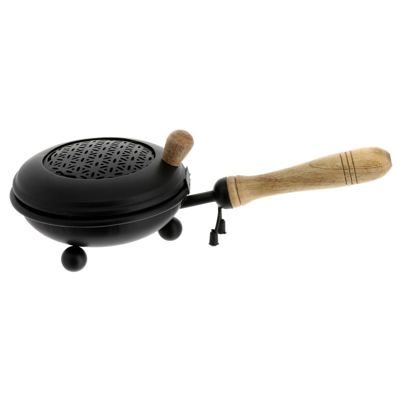 Arzator de tamaie din fier vopsit negru cu maner din lemn, diametru 12 cm