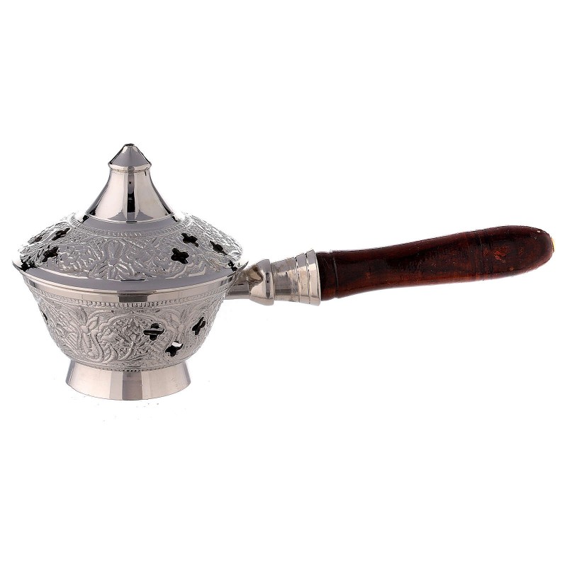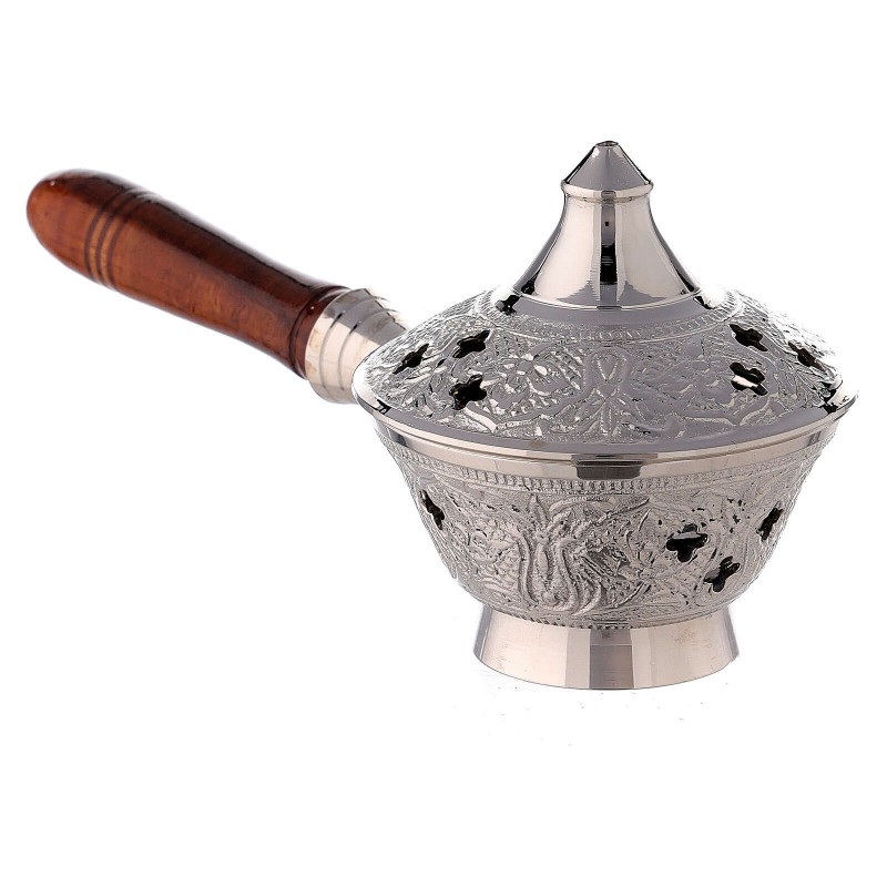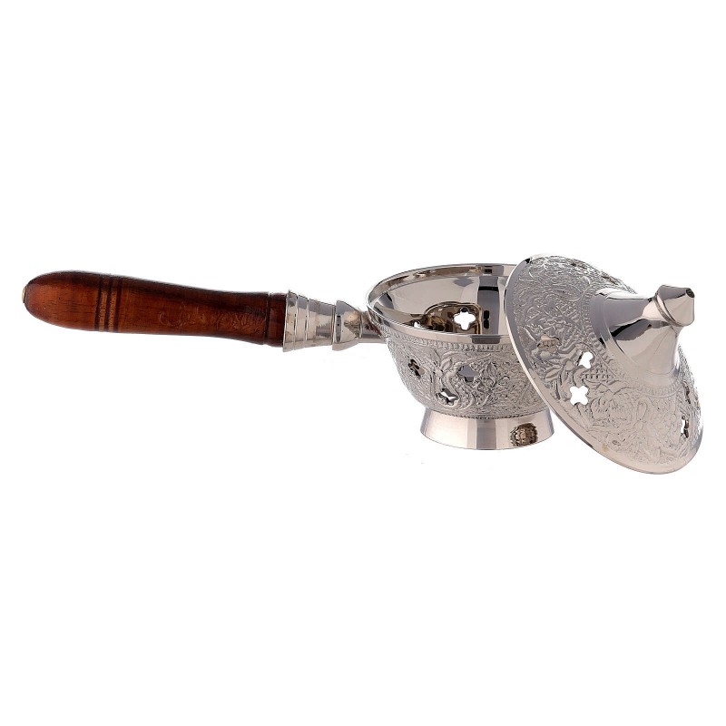 Arzator de tamaie din alama nichelata cu maner din lemn, lungime 17 cm