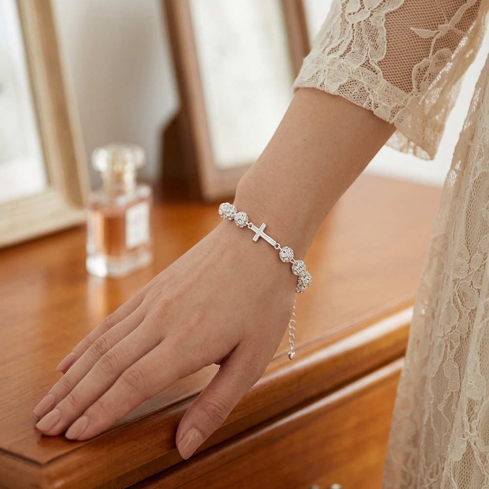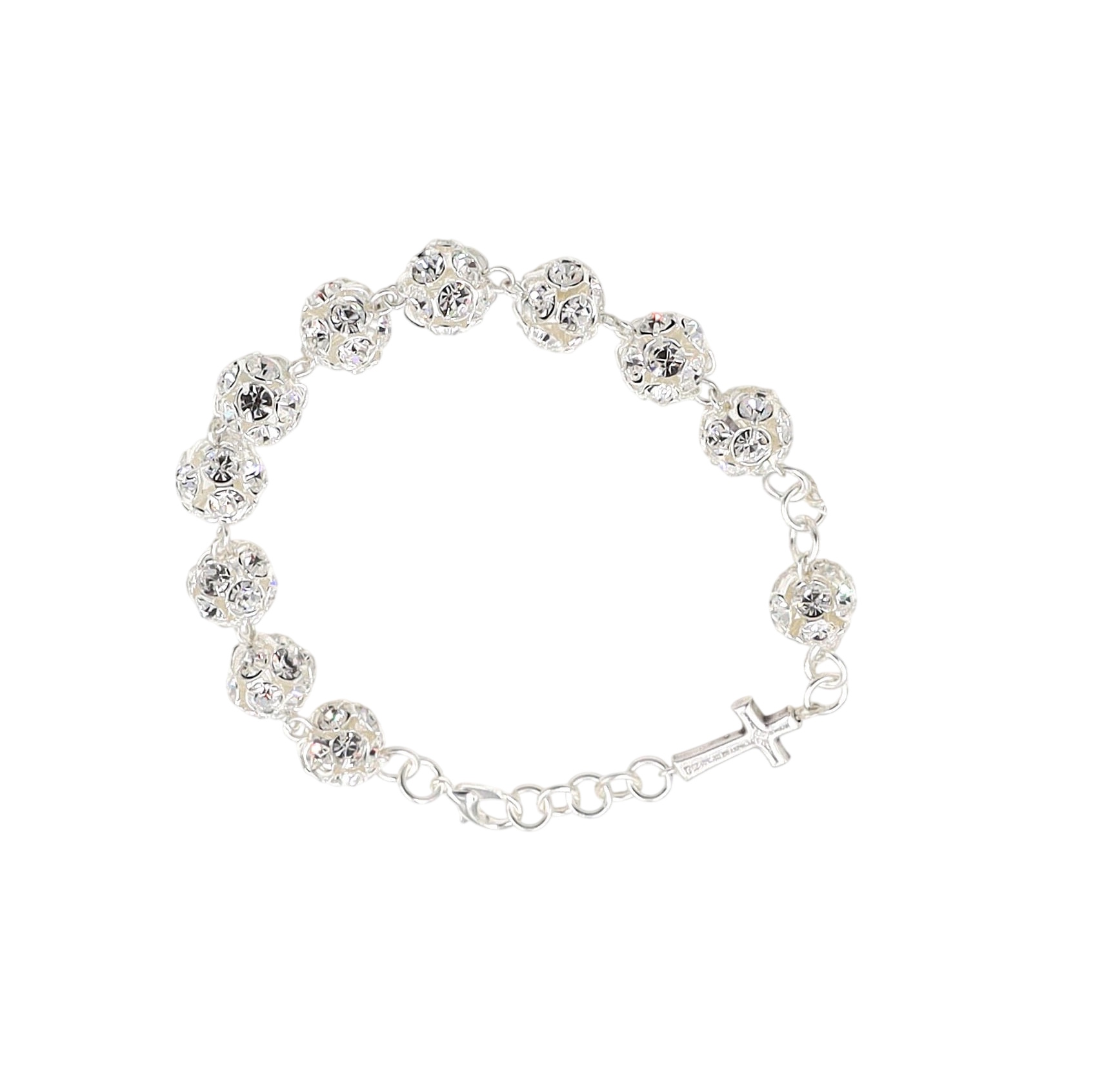 Bratara eleganta, realizata din cristale preziosa de 8 mm si impodobita cu o cruciulita de 15 mm