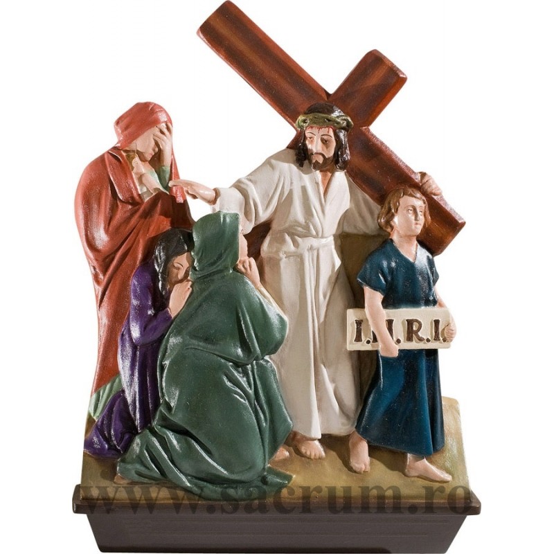 Calea Crucii din rasina sintetica in formatul 50 x 87 cm. Setul contine toate cele 14 statiuni. Scrisul poate fi
