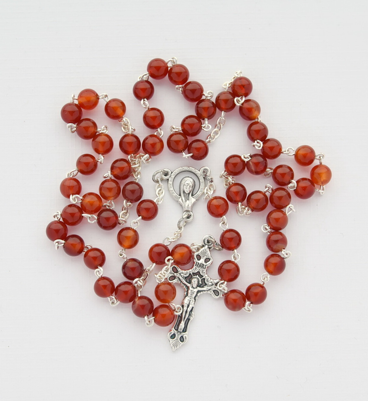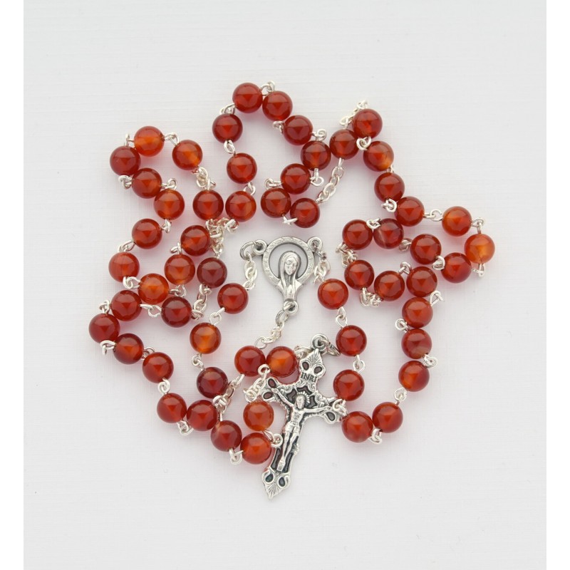 Rozariu din piatra naturala agat rosu, cu bobita de 6 mm, in cutiuta