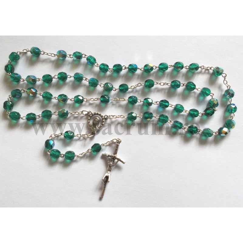Rozariu din sticla de culoare verde, bobita de 6 mm