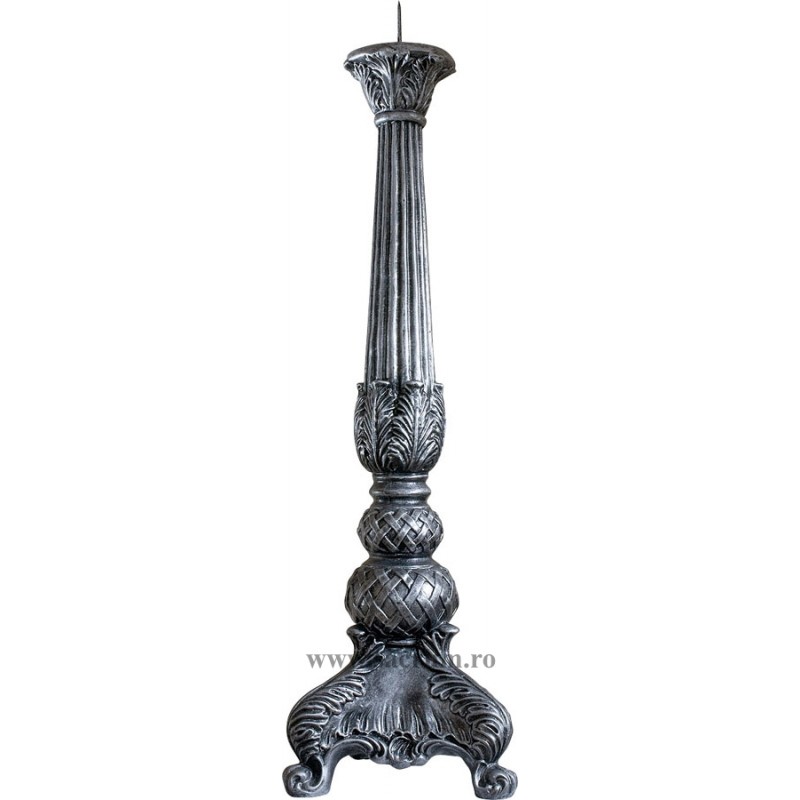 Suport pentru lumanarea pascala sau alte lumanari, de culoare argintie.