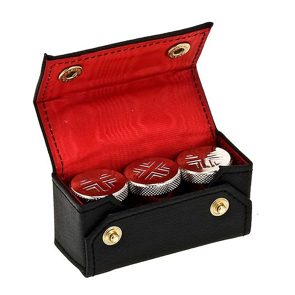 Vase pentru uleiuri sfinte in husa neagra si interior rosu