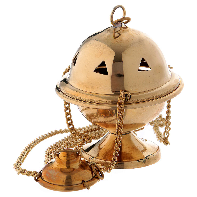 Cadelnita din alama aurita, inaltime 16 cm Diametru 9 cm Lungime lant: 60 cm