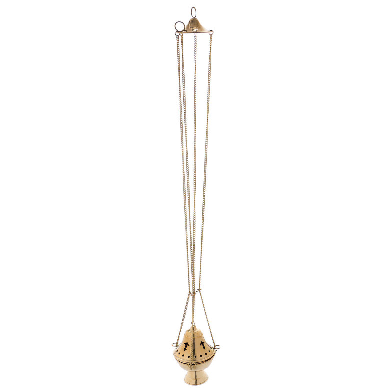 Cadelnita din alama aurita, inaltime 14 cm Diametru: 11 cm Lungime lant: 58 cm