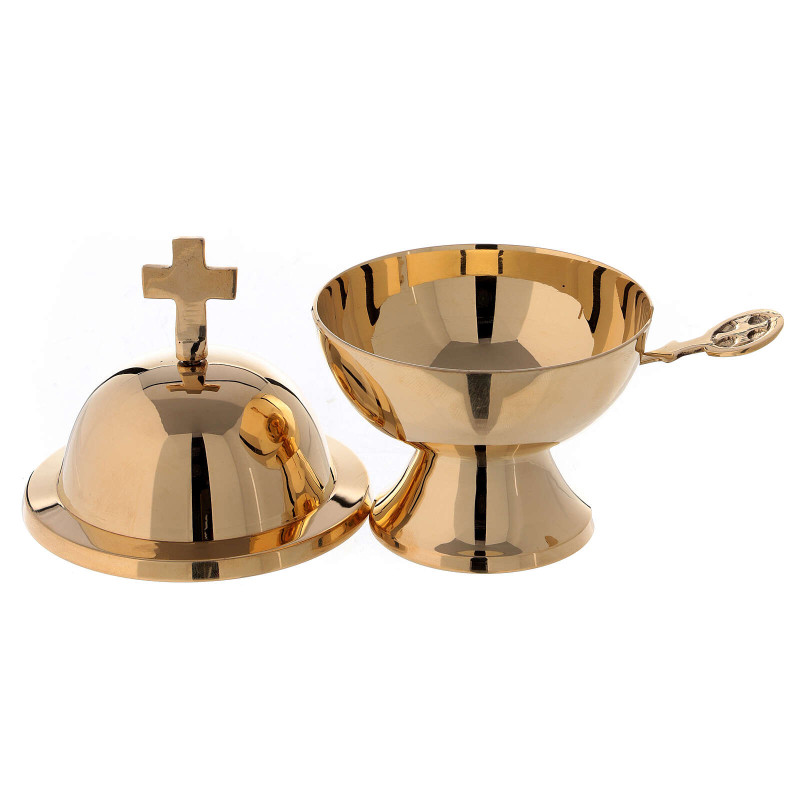 Navicela (suport pentru tamaie) din alama aurita si lingurita pentru tamaie inclusa