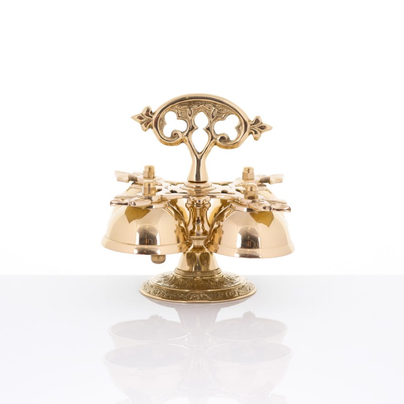 Clopotei liturgici cu 4 sunete decorat din alama aurita Dimensiuni: 17 x 13 cm