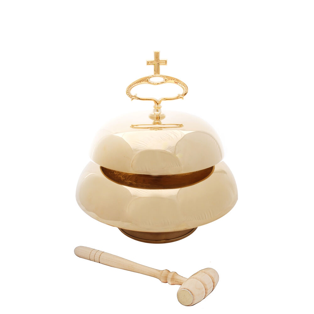 Gong pentru celebrarile liturgice, din alama bruta aurita cu sunet placut, curat