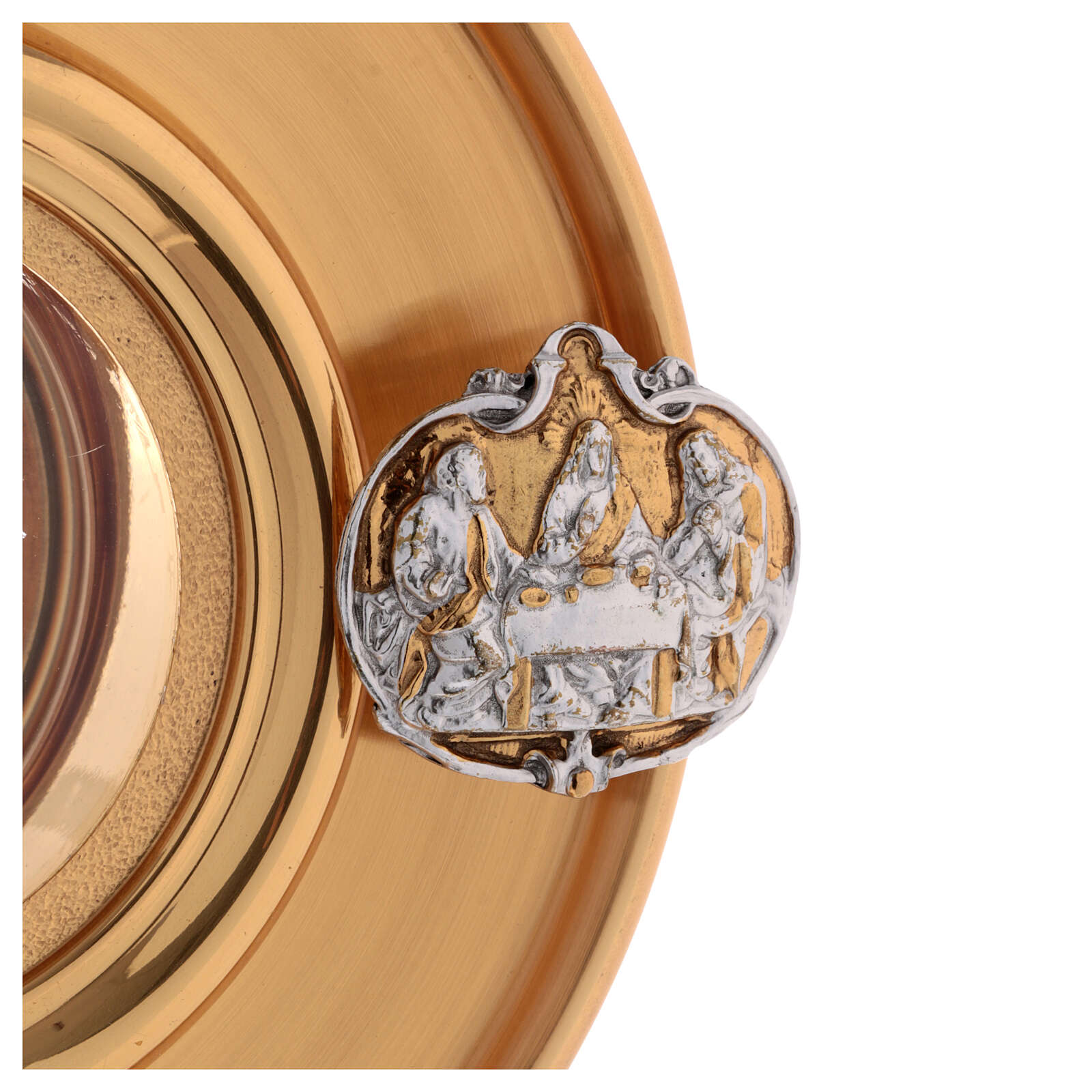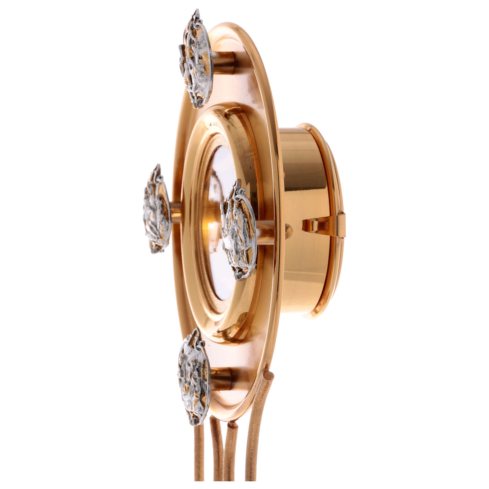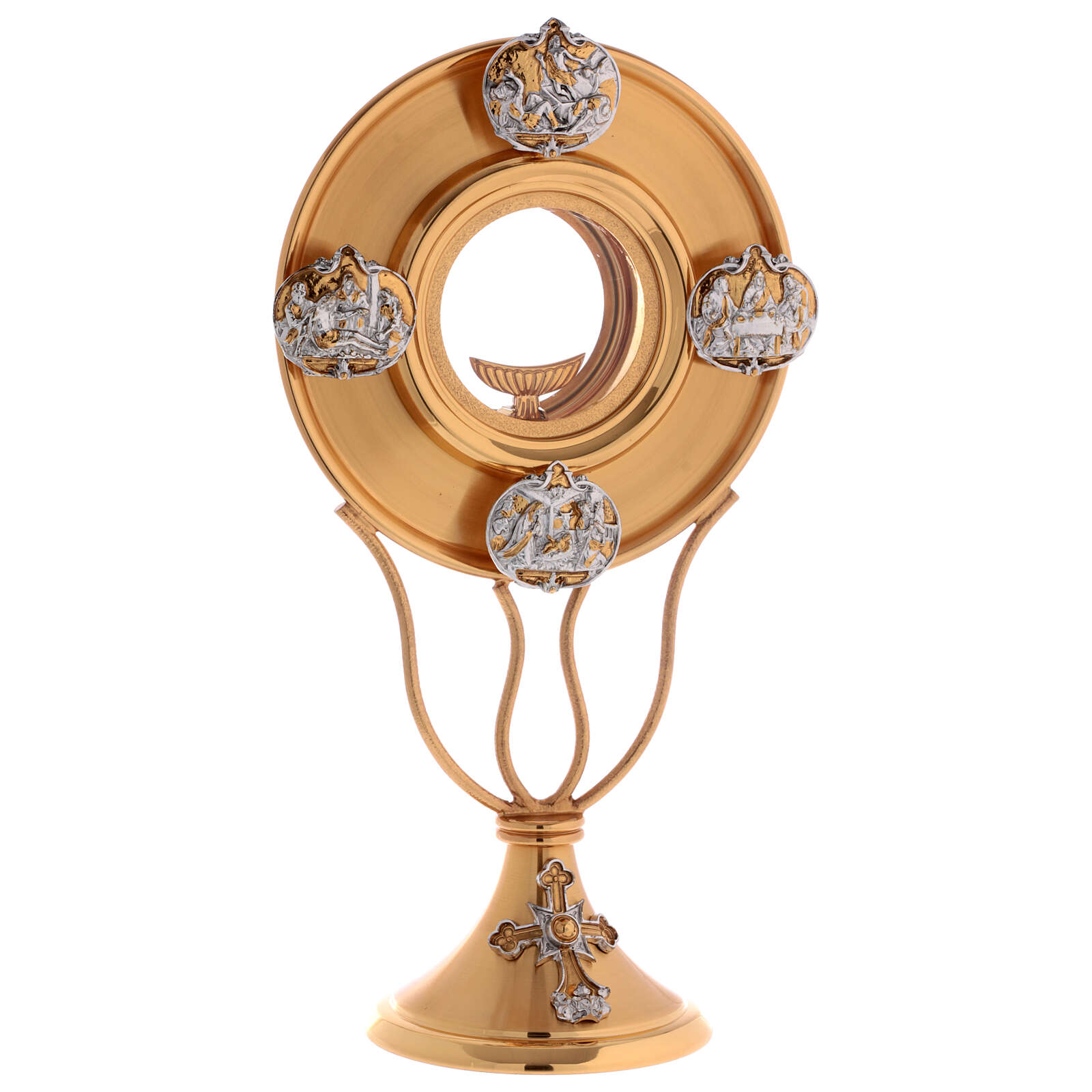 Monstranta din alama aurita si argintata, cu insertii argintate care reprezinta cateva scene din viata lui Isus