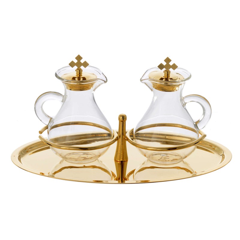 Paharute Liturgice pe tavita din metal aurit. Cele doua paharute se fixeaza de tavita pe suportul aferent, astfel se evita