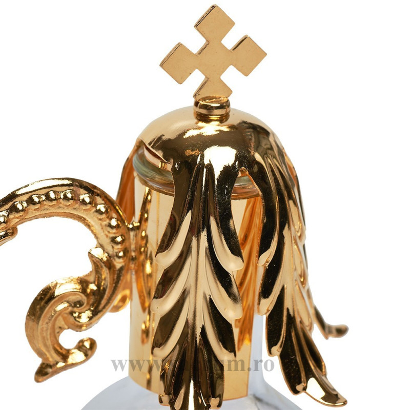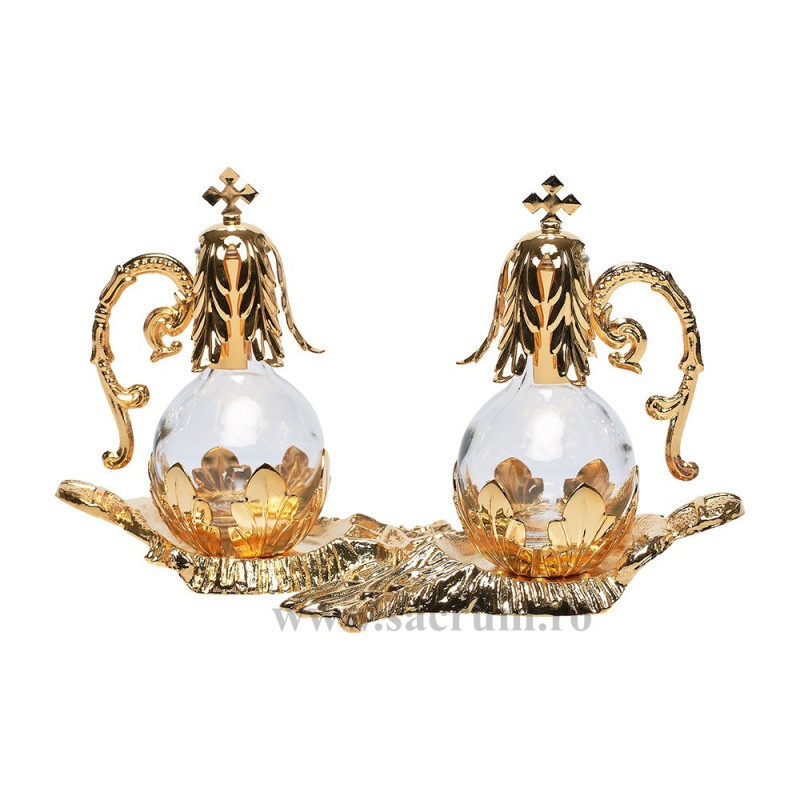 Paharute liturgice simple, din sticla. Capacelele sunt din metal aurit. Capacitate 100 ml. Dimensiuni: 20 x 10 cm.
