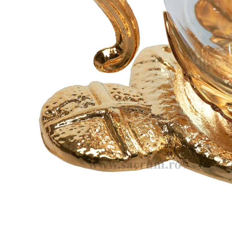 Paharute Liturgice pe tavita aurie si suporturi pentru acestea Dimensiuni tavita: 24 x 15 cm Paharutele capacitate 100 ml, inaltime