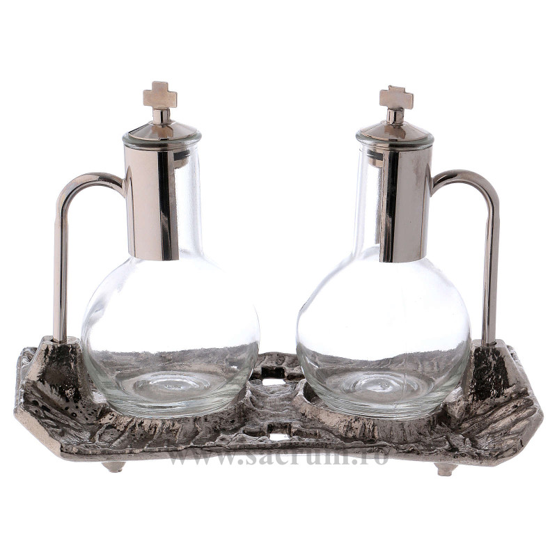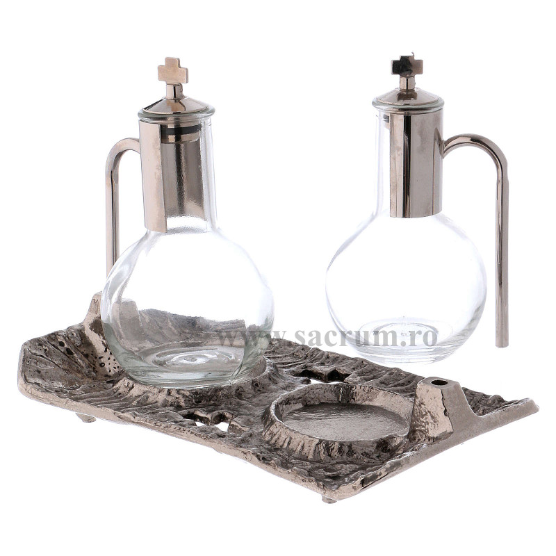 Paharute Liturgice din sticla cu capace nichelate. Sunt ancorate in suportul metalic nichelat ce este foarte bine fixat pe tavita din