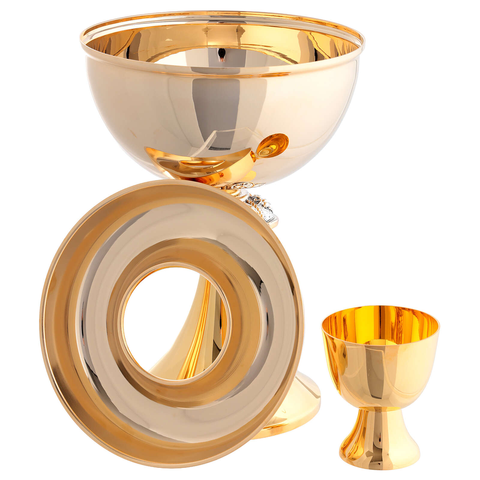 Complet pentru impartasanie sub ambele specii, potir central si ciboriu care poate contine pana la 150 hostii. Dimensiuni: inaltime 15