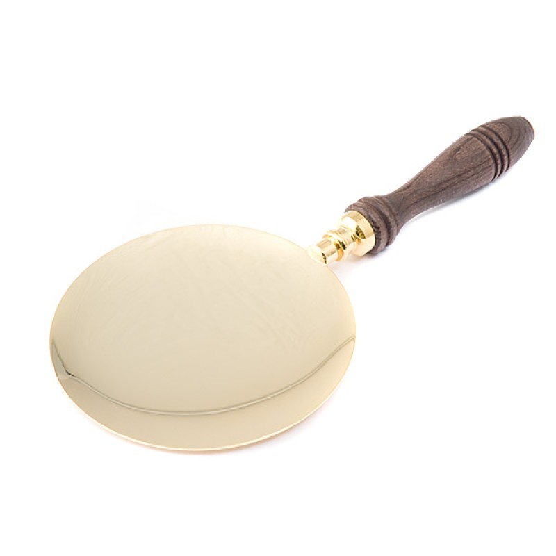 Patena aurita diametru 14 cm cu maner din lemn, lungime totala 29 cm.