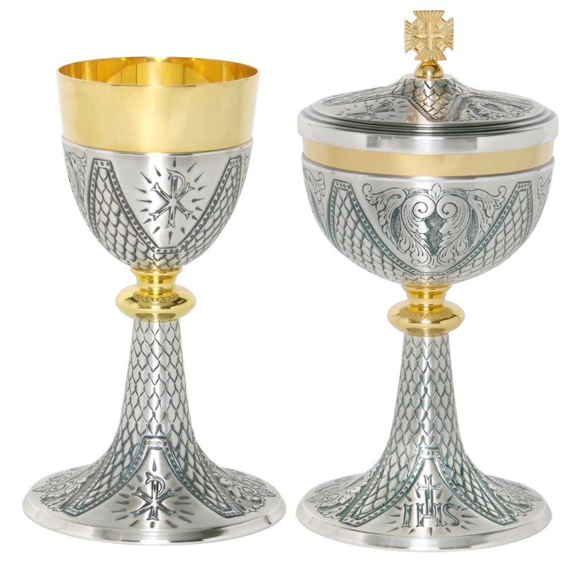 Potir si ciboriu aurit cu aur 24K si argintat cu argint 925.