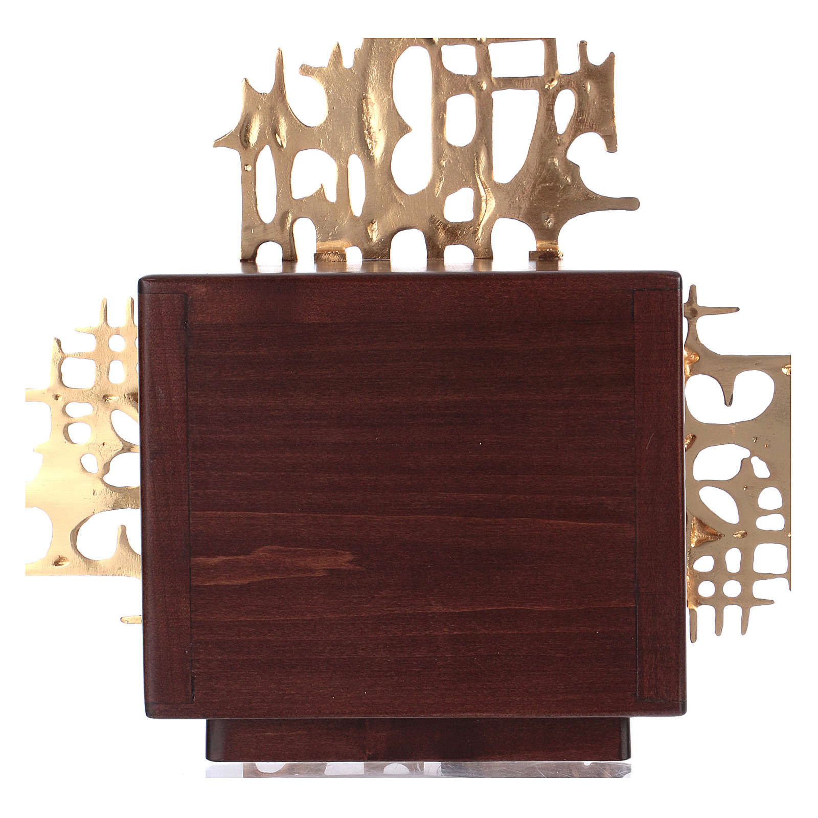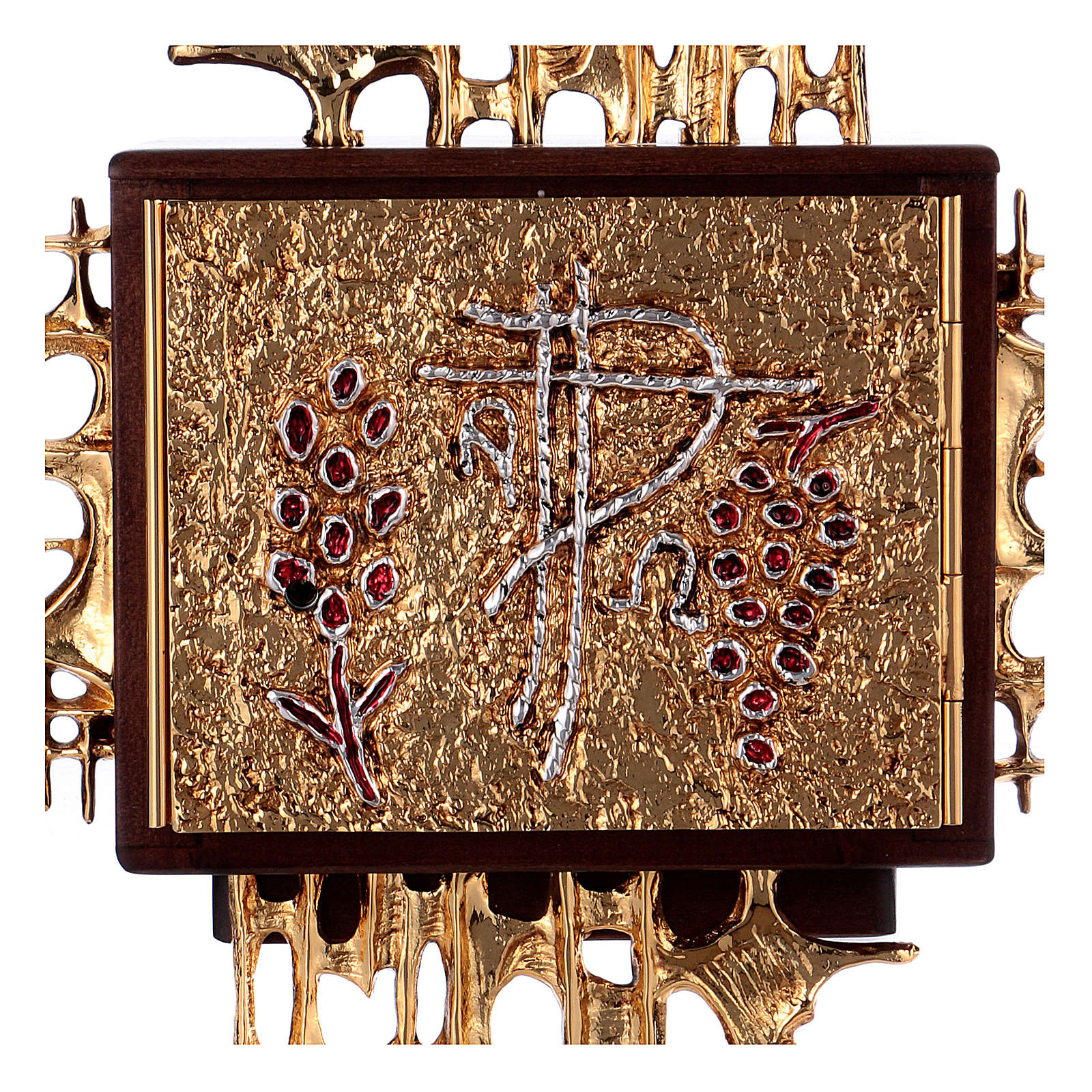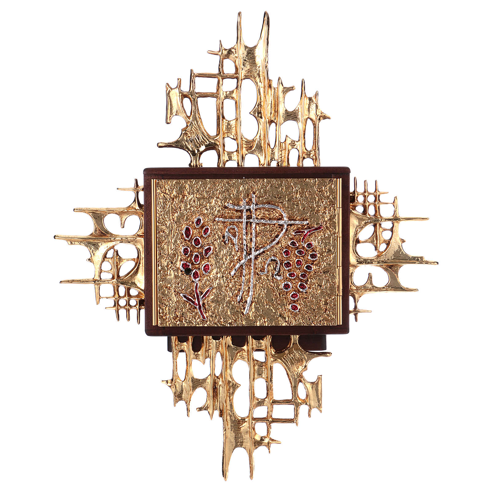 Tabernacol de perete, din lemn, cu usa din alama bruta aurita si argintata si raze