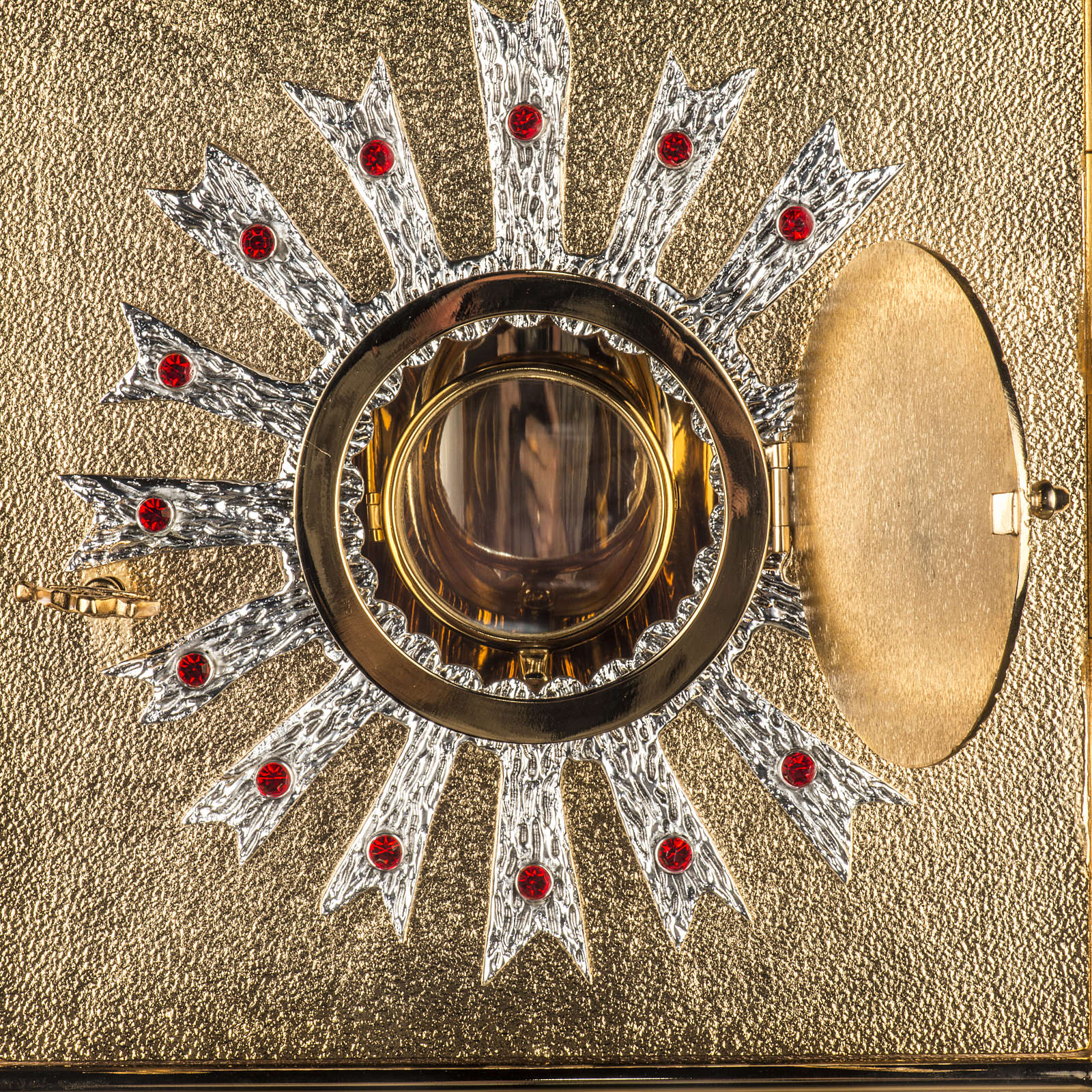 Tabernacol de perete din alama bruta, aurita cu aur 24K si argint