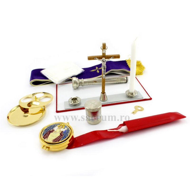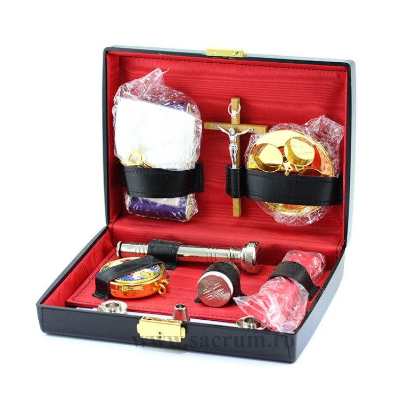 Aceasta contine: doua lumanari, suport pentru acestea, cruce, cutie pentru hostii, aspersor, vas pentru uleiuri, stola si purificator