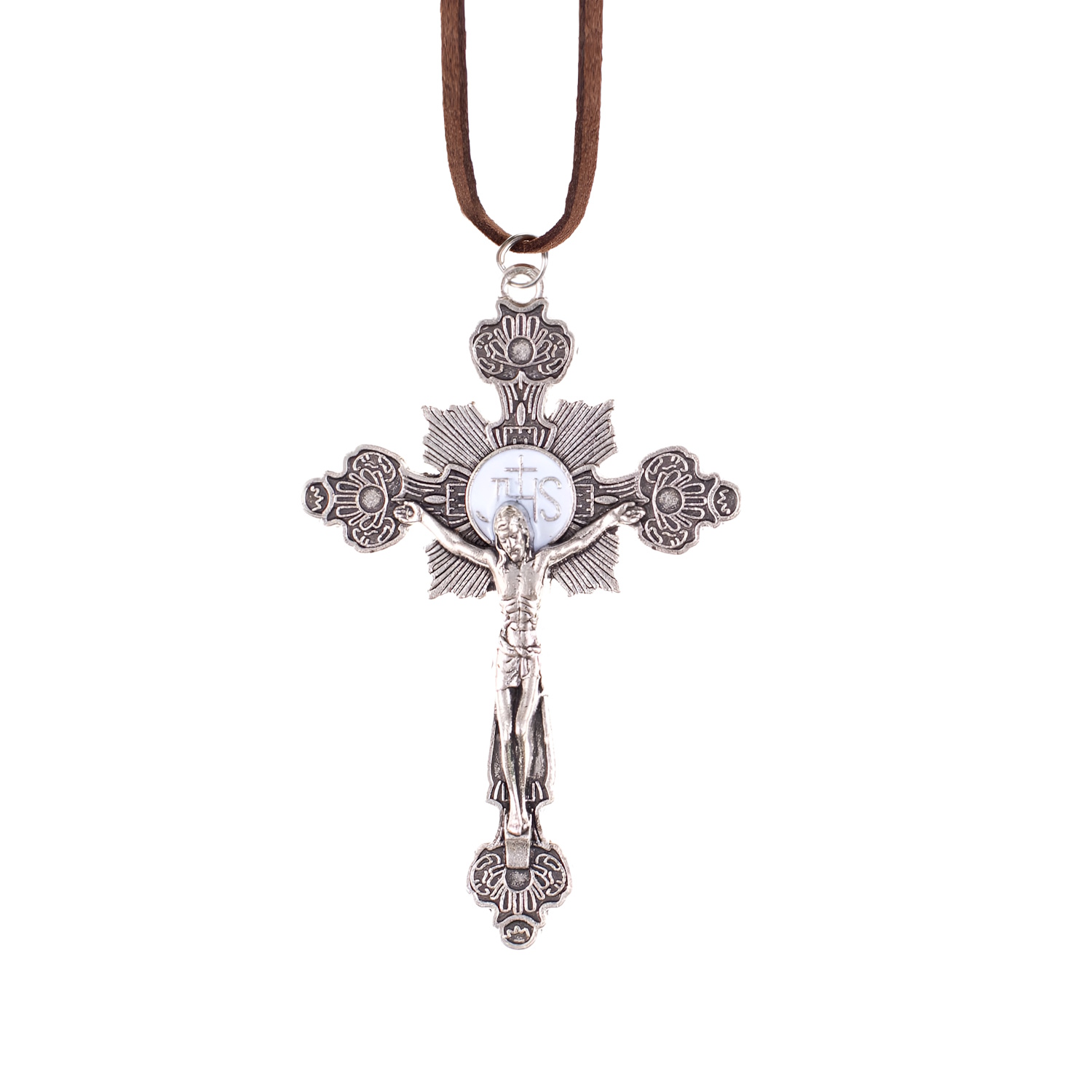 Cruce din metal cu motive Euharistice, potrivita atat pentru Prima Impartasanie cat si pentru ministranti