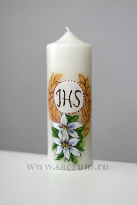Lumanare din ceara pictata cu simboluri Euharistice.