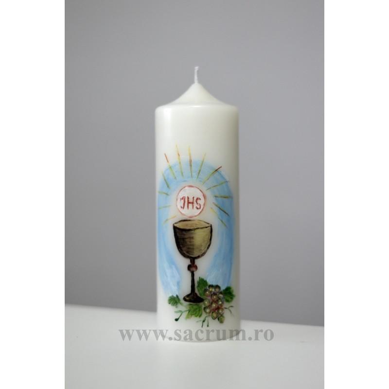Lumanare din ceara pictata cu simboluri Euharistice. Dimensiune lumanare  25 x 7 cm Va rugam sa alegeti dimensiunea dorita