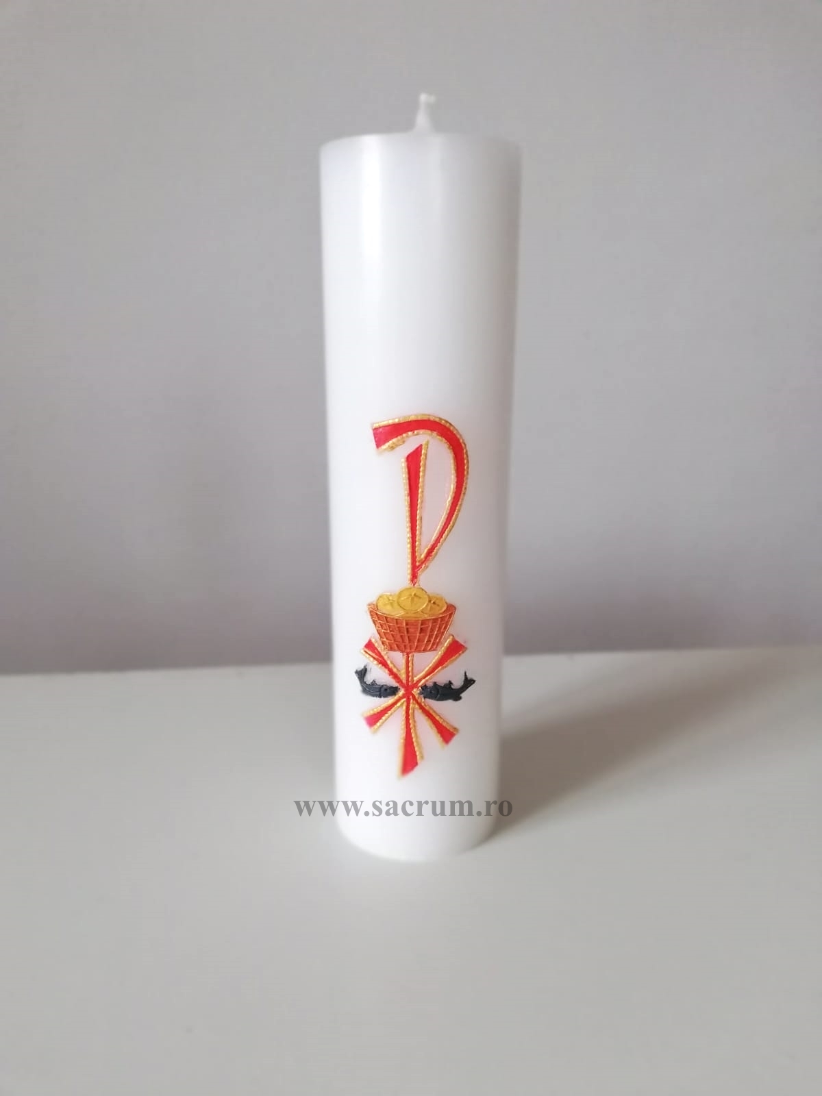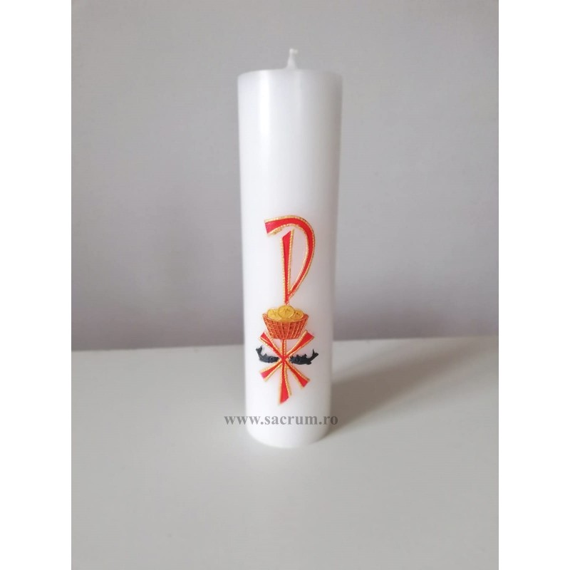Lumanare din ceara cu simboluri euharistice din ceara, pictata manual
