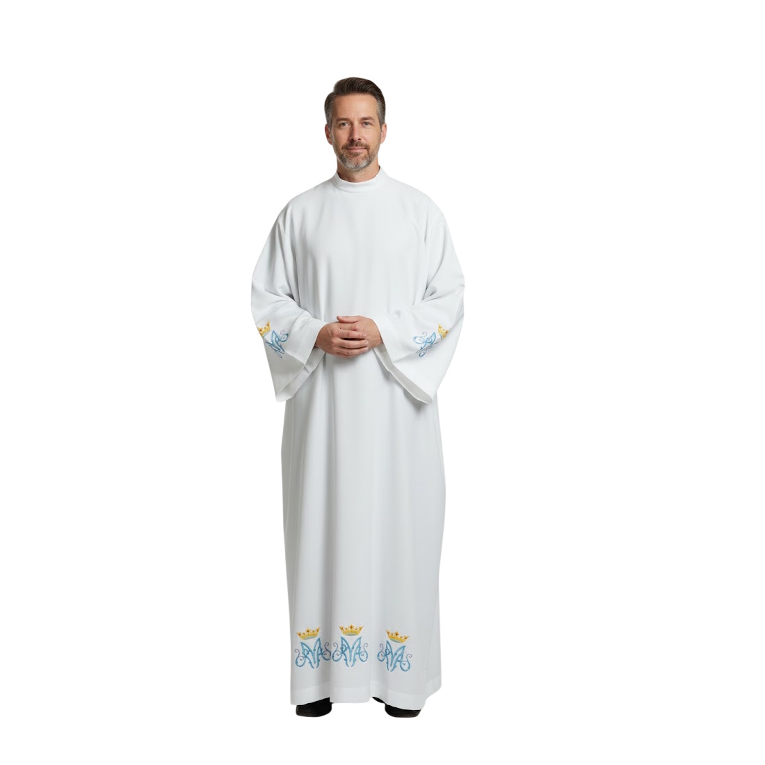 Alba brodata cu simbol Marian