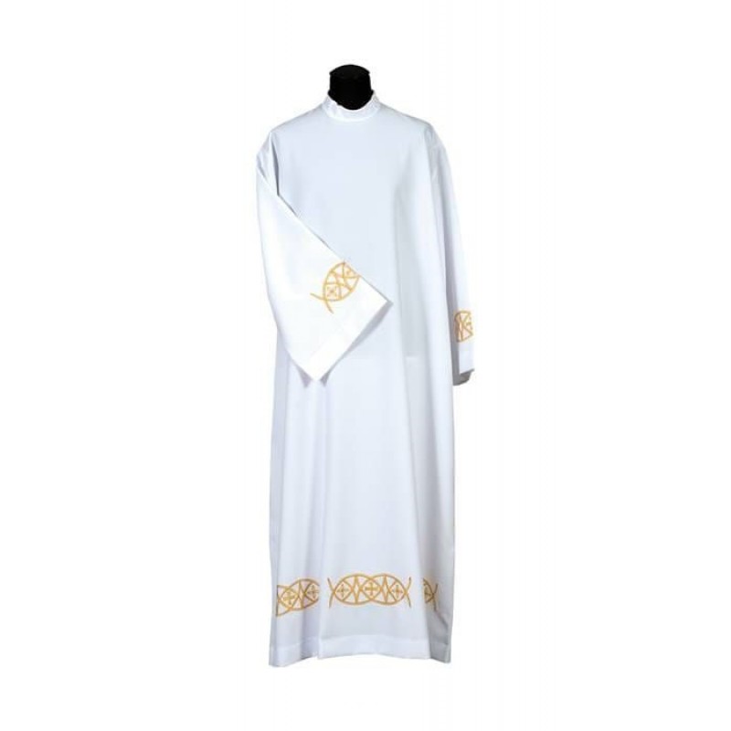 Cota cu pliuri in fata si spate si brodata cu simboluri Euharistice Va rugam sa alegeti marimea care corespunde tabelului