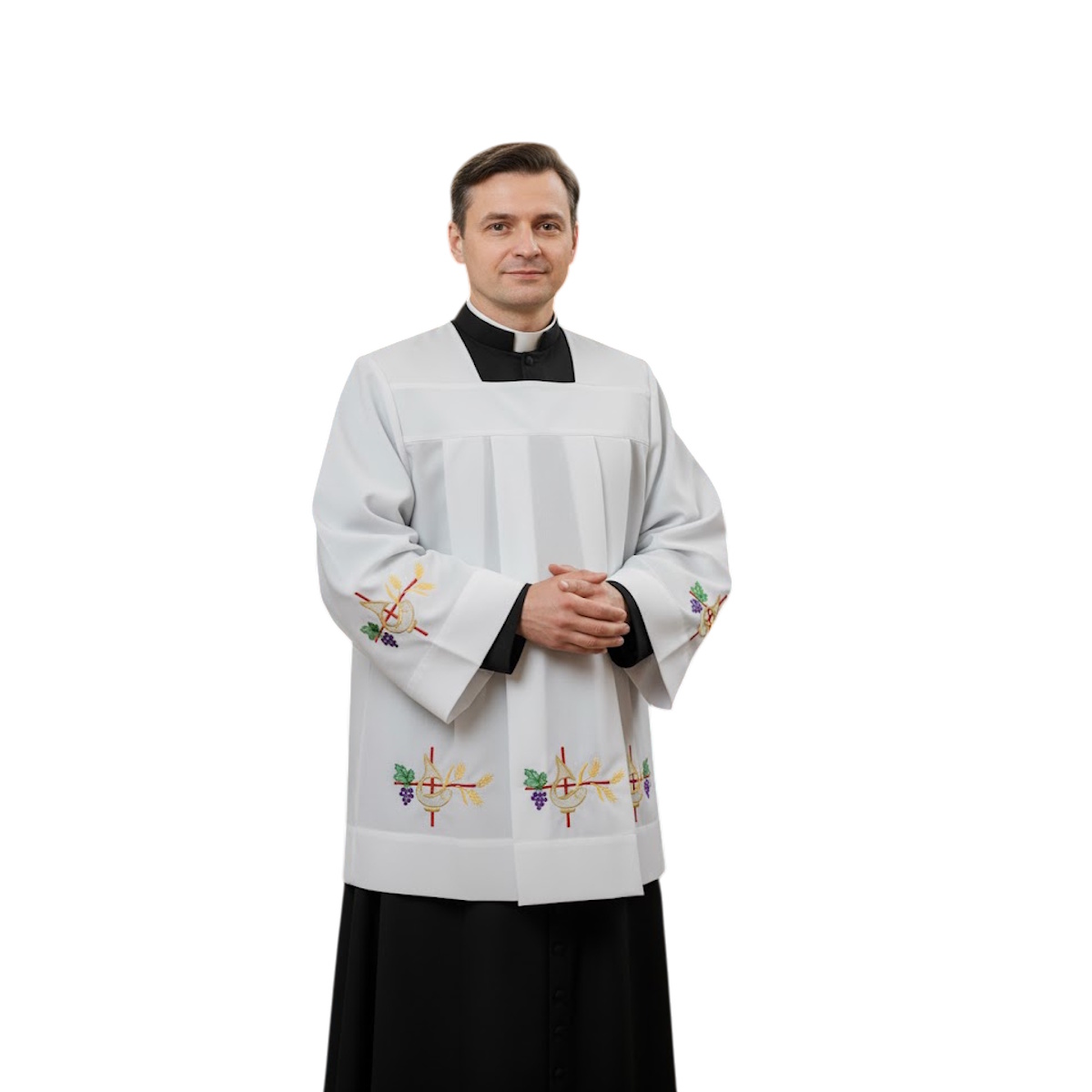 Cota cu pliuri in fata si spate si brodata cu simboluri Euharistice