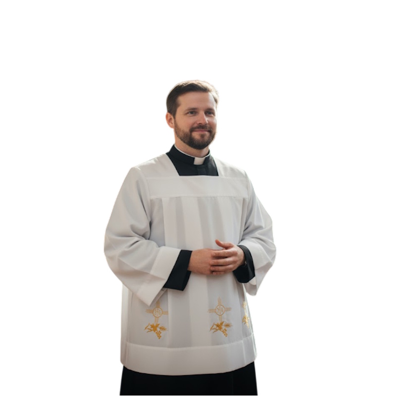 Cota cu pliuri in fata si spate si brodata cu simboluri Euharistice