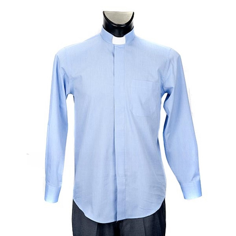 Camasa clericala clasica de culoare albastru deschis, maneca lunga, dintr-un material de foarte buna calitate Compozitie material: 65% bumbac si