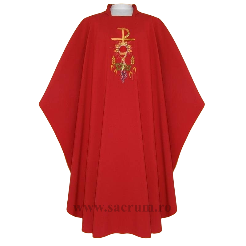 Ornat confectionat din tesatura de inalta calitate de culoare rosie, brodat cu simboluri liturgice
