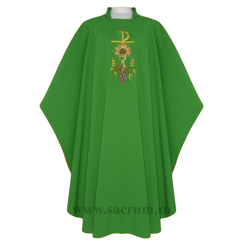 Ornat confectionat din tesatura de inalta calitate, culoare verde, brodat cu fir auriu