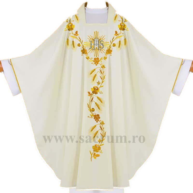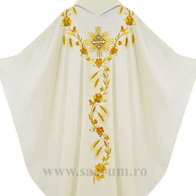 Ornat confectionat din tesatura de inalta calitate, culoare crem brodat cu fir auriu