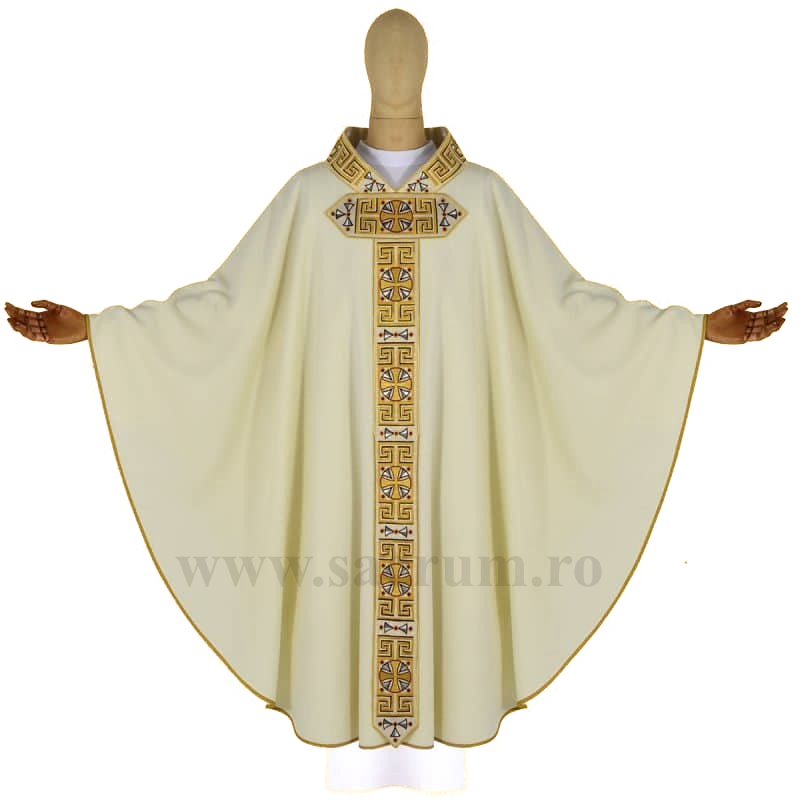 Ornat confectionat din tesatura de inalta calitate, culoare crem brodat cu fir auriu