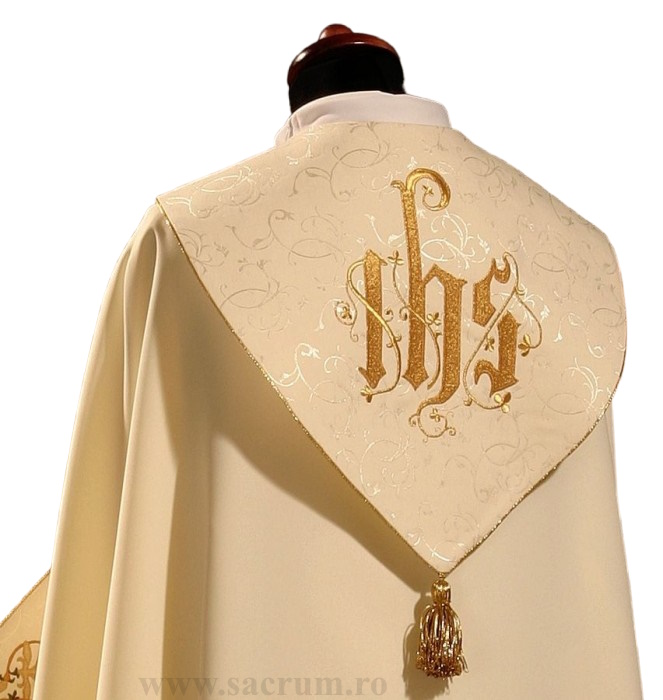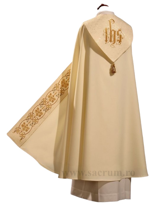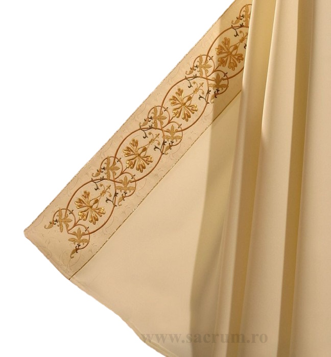 Pluvial brodat cu simboluri euharistice pe material satin crem de inalta calitate