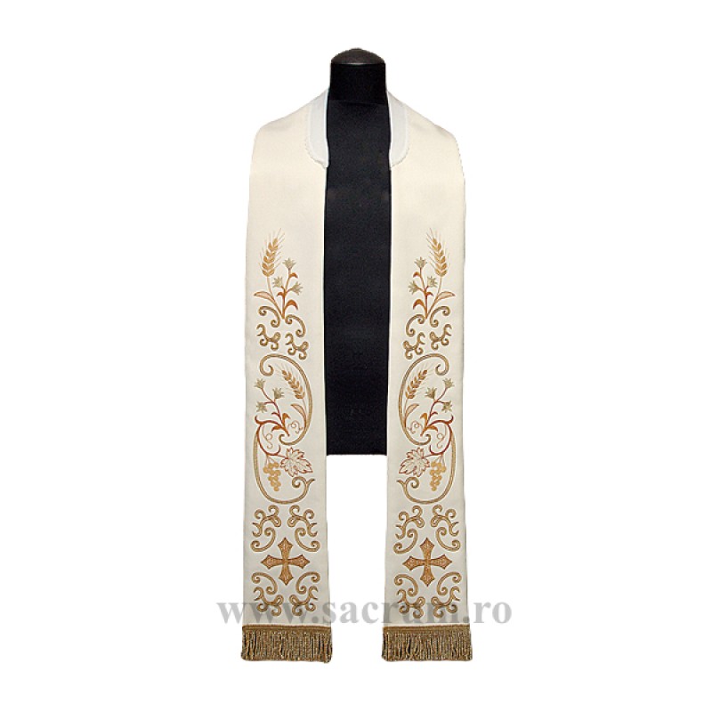 Stola alba, brodata cu simboluri euharistice